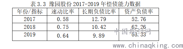 从表3.2可以看出,豫园股份这三年应收账款周转率呈现下滑态势,2019年应收账款周转率为43.79,比2017年下跌了31.99,这说明豫园股份收账速度在减缓,不利于豫园股份扩充销售量。存货周转率方面,豫园股份下滑尤为明显,2019年存货周转率仅为2017年的20.7%,这显现出豫园股份存货运转耗时增加,占有资金较多,增加了流动性风险,这提醒豫园股份需要调整营销方略加快货物运转。另外,表3.2显示,豫园股份在这3年间固定资产周转率从2017年10提高到2019年的17.25,提升了7.25次,这反映了豫园股份能较好地运用固定资产发挥其效能。