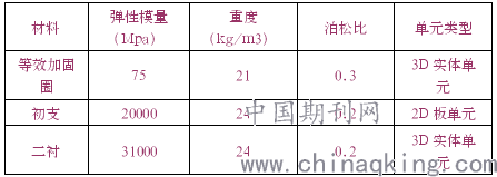超前加固中管棚和小导管注浆,在计算时将其简化拱形加固圈,模拟时利用改变加固圈土体参数来实现。