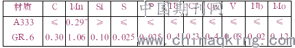 A333 GR.6属于低合金类低温钢,适用于低温环境作业,能承受一定的低温冲击。该钢含碳量低,合金元素较多,属于易产生焊接裂纹的钢材。ASTM A333/A333M自2016年对A333 GR.6除对常规的C、Mn、Si、S、P五大元素做了规定外,新增了Cr、Ni、Mo、Cu、V 、Nb和Mo等元素上限。其化学成分及机械性能[1]分别见表2.1和表2.2。