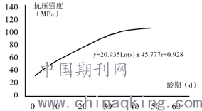 第一,强抗压性。相比于普通混凝土而言,高性能混凝土拥有更强的给抗压性能。通常来说,在龄期不断增加的条件下,高性能混凝土的强度也呈现出上升的趋势,具体关系如图1所示。