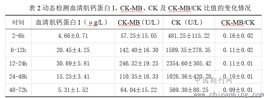 2.2动态检测血清肌钙蛋白I、CK-MB、CK及CK-MB/CK的变化情况