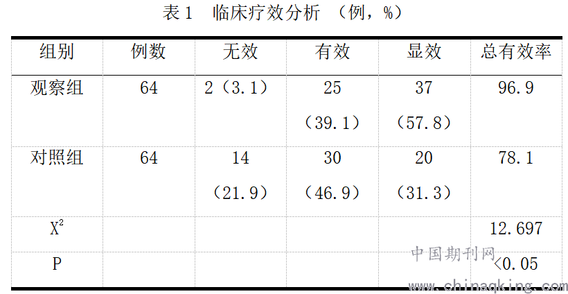 组间临床疗效对比(P<0.05),见表1。