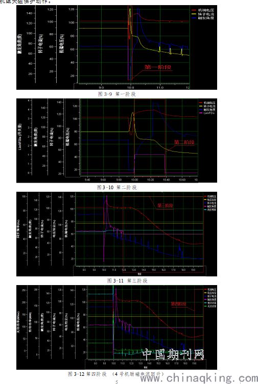 对3、4号机励磁调节器A套录波分析,励磁调节器动作分为以下几个阶段。