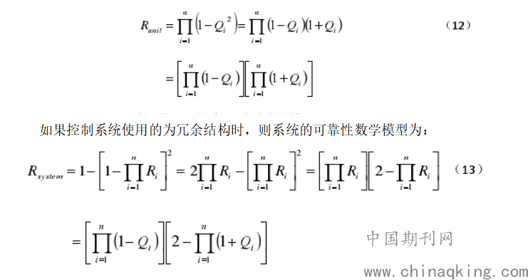 根据上述串联系统的可靠性模型,串联系统的可靠度可以看成时控制系统中每个独立功能单元的可靠度的乘积。