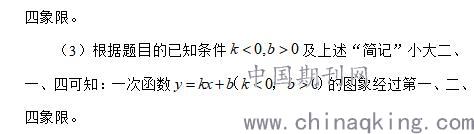 一.引导学生学习、理解、掌握函数表达式中待定系数的取值范围与函数图象所在象限位置之间的关系。