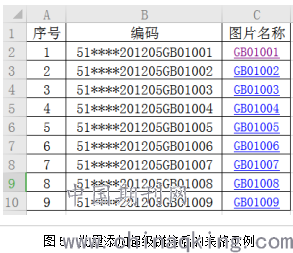 需要注意的是,此处添加超级链接的表格值与图片名称一致,如果不一致,也必须有较强的规律性(如:关联关系或逻辑、顺序关系),否则不适宜此种方法进行批量添加。