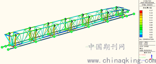 根据胎架设计图建立MIDAS GEN 模型,并采用有限元分析软件MIDAS 8.35进行模拟分析,对胎架结构简图进行计算分析得最大应力、变形值,获得胎架变形最小的情况。