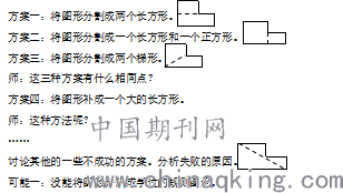 如果学生有困难,老师引导:我们是怎样来推导平行四边形面积公式的?我们在推导梯形面积公式时,采取了一些什么样的方法?