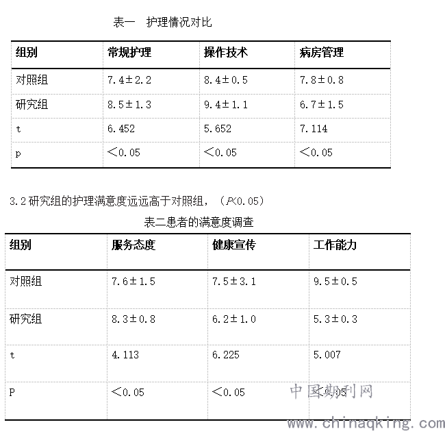 3.1研究组的护理质量远远高于对照组,(P<0.05)