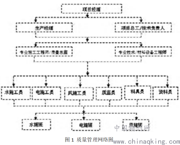 首先单位管理人员应意识到施工质量控制的必要性,明确施工质量是判断机电安装工程电气施工效果的重要标准,能够形成正确的施工管理观念[6]。其次根据电气施工实际情况、各个施工工序的具体要求和内容,以及相关条件和影响因素制定对应的质量管理制度,能够有效对施工材料、施工安全、施工技术、施工人员等方面进行监管,为提高机电安装工程电气施工水平提供基础保障和有效推力。除此,还应借助信息技术和互联网,建立质量管理网络图(见图1),搭建质量网络管理系统,帮助管理人员利用计算机等智能设备对电气施工各项工序进行实时监控和管理,可进一步提升整体施工过程的规范性和稳定性。为了提高施工质量管理信息化水平,还需要对所应用的智能设备、先进技术加强重视,做好软硬件设施建设工作,以及软硬件设施的定期检查维修工作,这样才能利用现代信息技术推动电气施工管理工作的应用与发展。