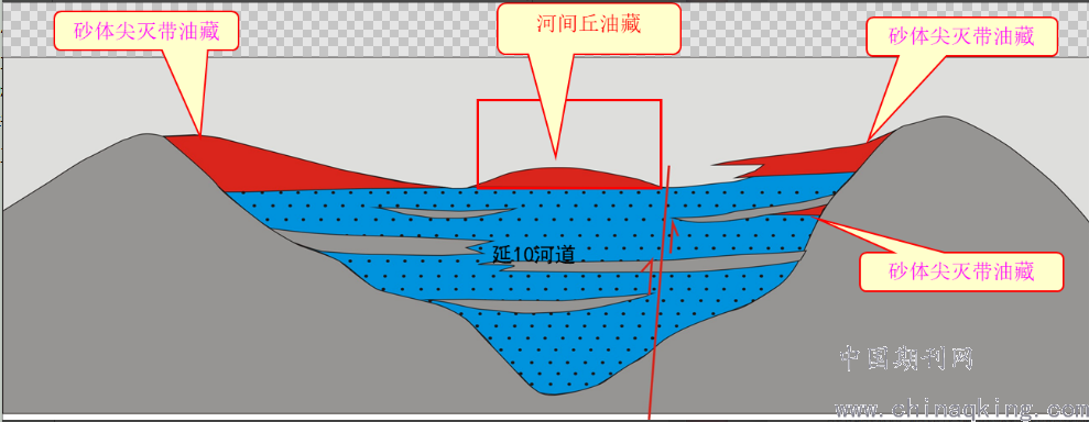 (2)延10具有明显的“烃源岩控区、断缝疏导、局部构造控藏”的油藏分布特征,油藏主要分布在河道边部砂体上倾尖灭带上,也存在个别河道中部成藏的例子。