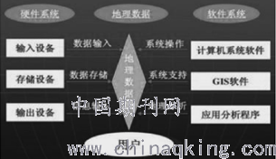 在运用地理信息系统前,技术人员要对系统有一图1GIS的构成个全面的了解,系统的各项功能都要知晓,一些简单的系统故障可以做到及时处理。地理信息系统的功能主要体现在模型构建、位置确定上。系统要先对物体的具体位置进行定义,并运用交互手段获取预测结果,技术人员再通过指定条件获得对象列表。运用GIS系统可以帮助工作人员获取定量数据。工作人员可以对已经发生的事件按照涉及因素进行分析和对比,从而了解数据与数据之间存在的深层关系。为了解决模型问题,还需要工作人员对数据关系进行确定,目前使用比较广泛的主要是数据采集等基本功能。