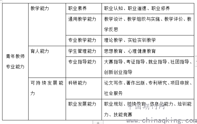 本文将高职青年教师的专业能力概括为教学能力、育人能力和可持续发展能力,见表1。