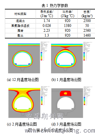 由图6可知,冬季隧道冻结区域始终未覆盖围岩,且3月份温度场回升至正温,这说明在隧道内敷设5cm防冻隔热层,可以提升背部围岩冬季温度,保证其冬季不发生冻结。