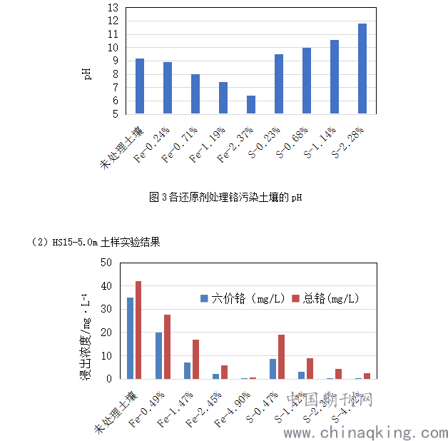 注:土壤检测报告显示所有样品钡的浸出浓度均未超标,故后续研究只对总铬和六价铬进行了效果检测。