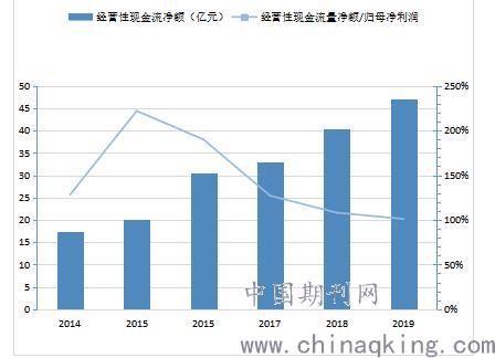 从利润的变现性来看,迈瑞现金流质量持续向好。2019年销售收现比率为1.12,说明销售变现能力强,收回本期应收款项的同时还收回了部分以往年度的。2019年净利润现金比率为1.01,经营性现金流量净额与净利润始终保持基本匹配,符合预期,具体情况如图5-3所示。