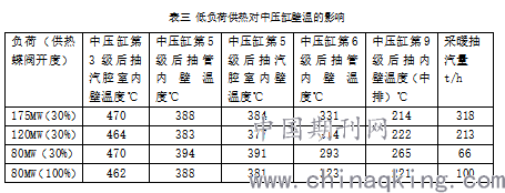 结论:机组负荷120MW以上时,随着负荷的降低,中压缸壁温略有变化,但变化量不大。机组负荷120MW以下时,随着负荷的降低,采暖抽汽量大幅降低,中压缸第5、9级壁温上升。供热蝶阀全开后,随着抽汽量及低压缸进汽量的增加,中压缸第5、9级壁温恢复原运行温度。