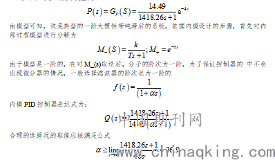 上世纪八十年代,Garcia和Morari两位学者经过长时间的研究复杂对象的控制过 程,全面分析多变量、非线性、时变的对象模型,结合史密斯预估计控制策略,系统的向世人阐述了一种全新的控制方法,这就是内模控制方法。依据被控对象的数学模型, 经过简单有效的设计步骤,就可以设计出针对实际被控对象的内模控制器,用该控制器对被控对象进行控制,可以提高系统动态变化的跟踪能力,获得良好的控制效果,实用性也特别强,同时对外界的强干扰也有很好的抑制效果。虽然PID就能解决自动化生产中很多的控制问题,但常规的PID控制很难有效的控制具有非线性、大滞后性、 多变量耦合的复杂系统。用内模控制的思想来设计的等效PID控制器,称这种控制方式为内模PID。对比于PID调整三个参数,仅仅只需要调整一个参数,大大缩短 参数调整的时间,提高了工作效率。同时,内模PID对改善大时滞的控制对象有着很 好的鲁棒性和抗干扰性。