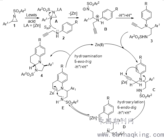 金属催化的反应是有机合成中非常重要的组成部分,可以合成多种有机物,丰富了化合物的种类[1]。本文描述了金属催化的双环化反应在合成氮杂环中的应用。