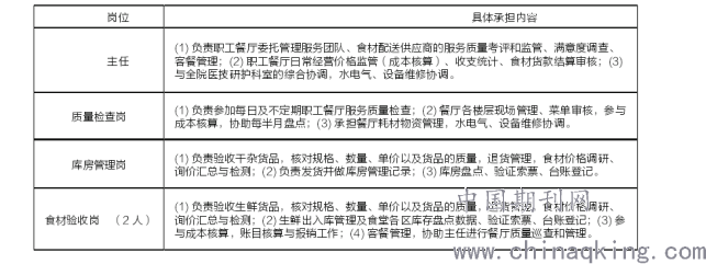 表 1 职工餐厅岗位职责