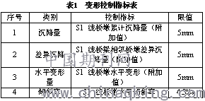 根据相关规范要求,并综合考虑S1线高架桥墩规模、结构形式、基础类型、建筑材料、所处地质条件等因素,结合其与本工程的空间位置关系、已有沉降(差异沉降)和倾斜以及当地工程经验,本工程施工对温州市域铁路S1号线高架桥墩变形控制标准如下表所示: