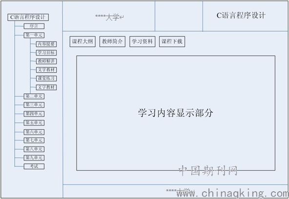 SCORM即可共享内容对象参考模型,是由ADL计划开发的,是关于共享课件的创建、管理和使用的标准,旨在让任何SCORM课件在任何符合SCORM标准的平台上都能顺畅运行。C语言是计算机科学与技术专业的入门课程,教学目的主要是培养学生利用计算机处理问题的思维方式和结构化程序设计方法。本文基于SCORM技术进行C语言远程教学课件设计。