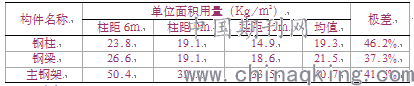 表2 钢柱、钢梁以及主钢梁单位用钢量