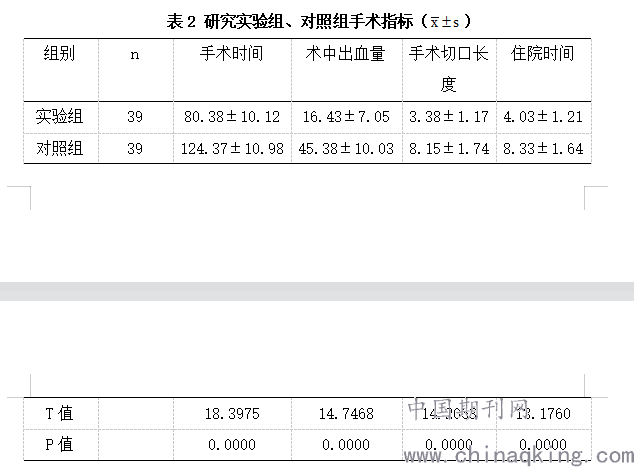 研究中,实验组患者采用改良小切口手术,各项指标较之于对照组,P<0.05。由此证实,改良小切口手术较之于传统甲状腺切除手术,优越性突出,各项手术指标明显改善,且术后不良反应少,可确保伤口的美观性,具有较高的推广应用价值。