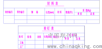 为保证每张图纸信息的一致性,出图前对图框和构件材料表进行定制,材料表定制格式如下图所示。