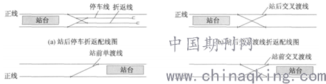 岛式站台的设计为站台在线路中间,折返形式分为站前折返和站后折返,其中站前折返分为站前单渡线和交叉渡线折返,站后折返分为站后交叉渡线和站后配线折返。如图1