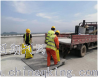 ①、首先严格按照安全施工要求在大桥两侧设立相关标志牌,建立工作区。相关人员、设备必须在保护区内作业,确保施工安全。并准备好水车及路面清扫车。