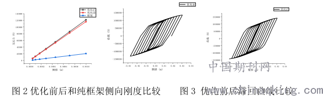 通过对比优化前后结构的滞回曲线,可以发现优化后的曲线更为饱满,而且极限值略微增加,耗能性能更好。