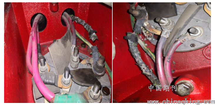 图一 4号仪用空压机电机接线盒内部故障情况