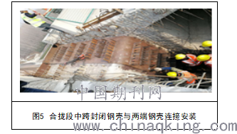 图5 合拢段中跨封闭钢壳与两端钢壳连接安装