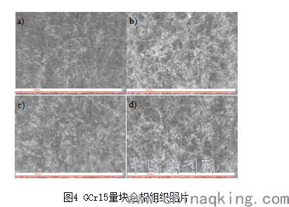 热处理后,对符合硬度要求的4组试样的金相组织进行了观察,试样的金相组织如图4所示。