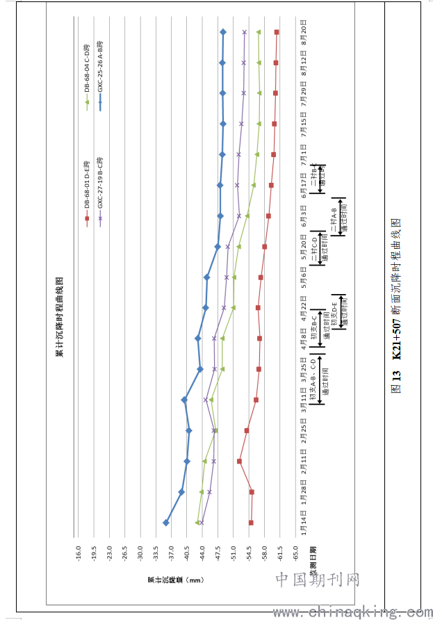 图13 K21+507断面沉降时程曲线图