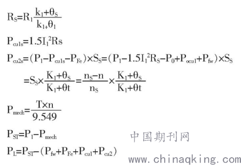 (3) 负载试验:热试验基础上,从1.5倍额定输出功率开始到0.25倍输出功率为止,实测输入参数功率P1、电流I和输出转矩Ta、电机转速n (即输出功率P2) 。通过分析获得定子绕组损耗Pcu1、转子绕组损耗Pcu2。