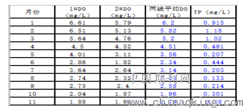 附表3 1-11月份两线曝气池在线DO日均值与出水TP日均值(单位:mg/L)