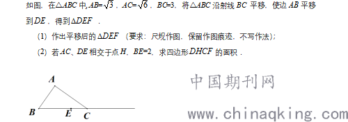 [设计意图]试题以平移变换为背景,考查学生对平移变换的了解、运用以及语言的描述能力,考查学生对相似三角形的判定与性质的掌握情况,希望通过此题的画图使学生体验、感悟到全等三角形的三个判定边边边、边角边、角边角,,使学生掌握尺规作一条线段等于已知线段,作一个角等于已知角,让学生把文字语言转化成几何语言,再根据几何语言画出图形,发挥学生的空间想象能力。