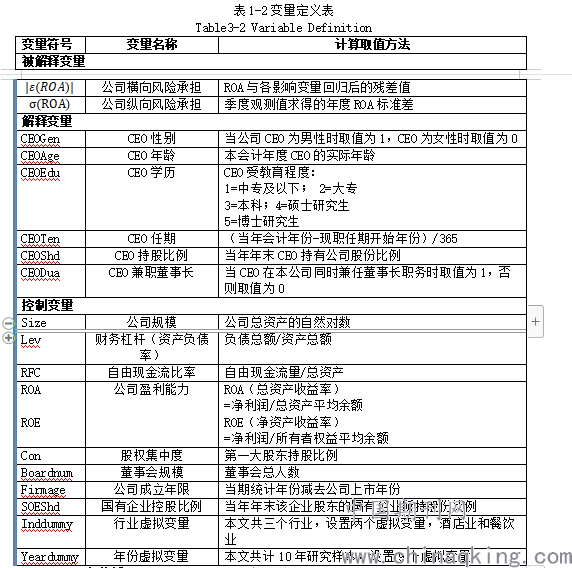第二,国内外有关CEO特征的研究往往都集中在其某一主要特征,如性别或年龄等。而本文将CEO的六大主要特征同时选作为研究对象,更加全面的诠释了CEO的背景信息会对企业投资、风险可能产生的影响;