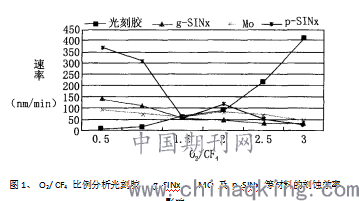 3.1、O2/ CF4比例对MO、p-SINx、g-iNx和光刻胶刻蚀速率的影响