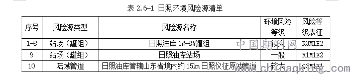 按照环境风险物质种类和生产装置的布局,确定日照油库涉及环境风险源10个。祥见下表。