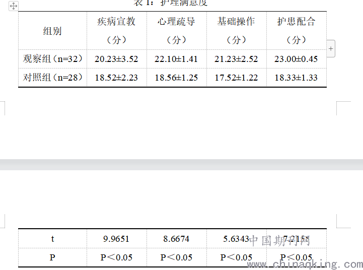 表1:护理满意度