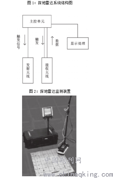 探地雷达检测方式就是以某个不变的波速传统被测量的路桥表面,通过相应的声波实现相对较短的脉冲,从而实现持续不间断的传播,被检测物体表面应安置相应的设备接收器,并根据设备所获取信息的不同信号以此对应不同类别的介电常数,与此同时,应连续监测信号振幅以及频率等,充分了解并掌握材料材质的特征。具体探地雷达系统软件的基本构成如图1所示。其次,探地雷达的检测技术还通常运用在定位管道的测量,并完成该区域加固测量,此项检测方式的优势在于安全可靠,而高频电磁脉冲会通过天线所传导,当传导界面产生变化时,部分电磁波会发生相应的反射折射,此时接收器会记录下该状况,并采取相同外壳中的发射天线与接收条年限进行单声道操作,此时的天线频率约为110-150MHz之间,并运用集成系统扫描,以此完成对反射信号的雷达追踪,并迅速检测出空洞与剥离的状况。除此之外,由于探地雷达不受恶劣天气所影响,促使探地雷达技术的运用范围更加广阔,进一步保证了路桥整体工程质量符合相关标准。而探地雷达检测装置如图 2所示[2]